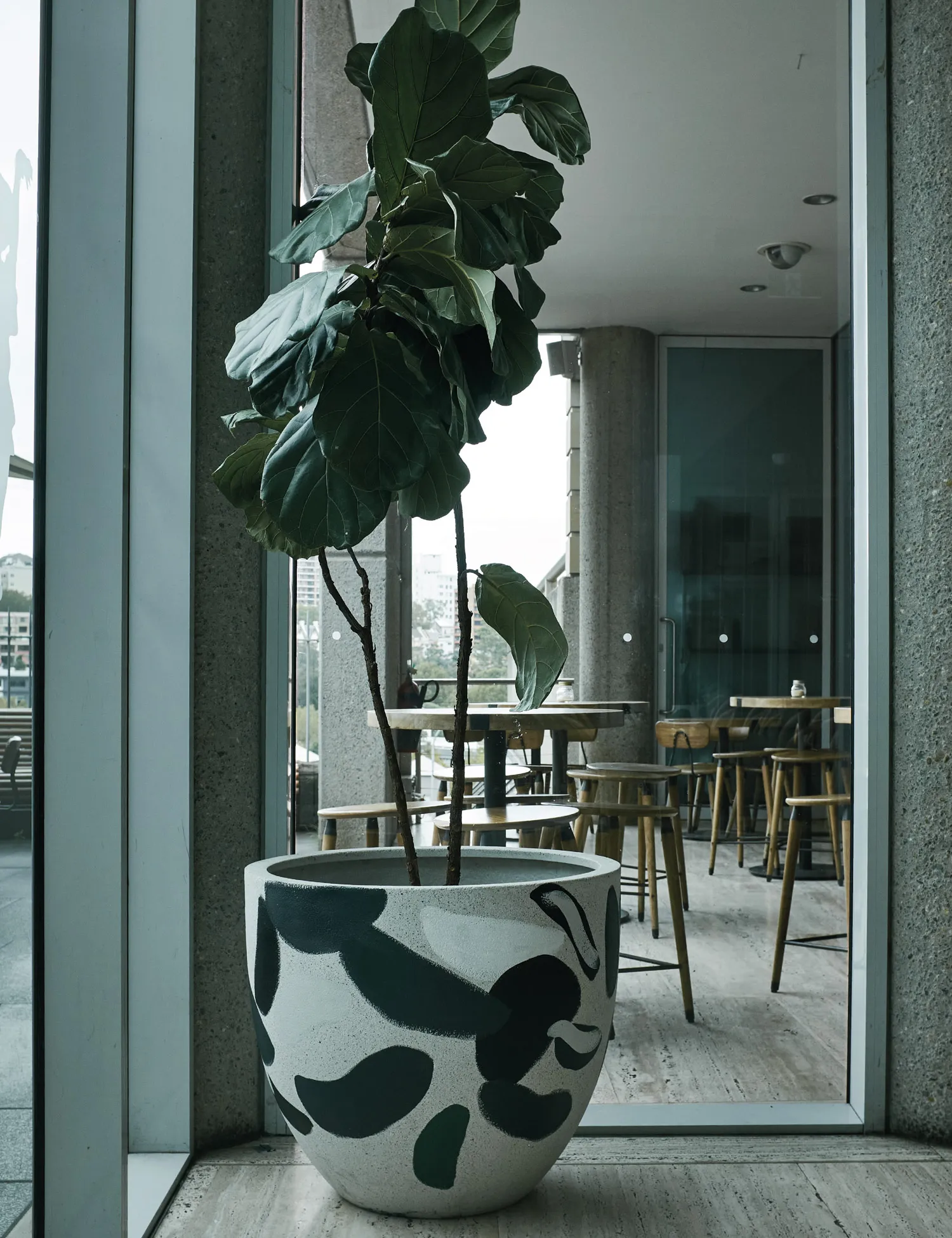 Inspired by Japanese tiles, I developed a series of hand-painted pots designed for both indoor and outdoor spaces alongside a painted tile wall, bringing a sense of calm energy into the environment.